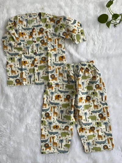 Soft, breathable cotton pajama set designed for all-day comfort. Features a relaxed fit with an elastic waistband, perfect for both boys and girls. Ideal for sleepwear and lounging. Gentle on skin and easy to maintain.