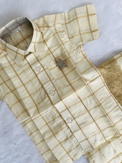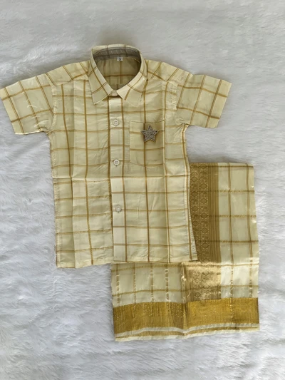 Includes : Shirt , dhoti with velcro , towel and brooch