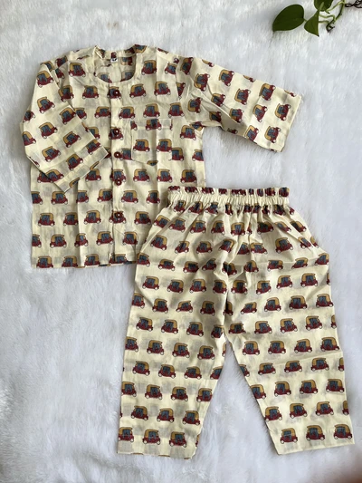 Soft, breathable cotton pajama set designed for all-day comfort. Features a relaxed fit with an elastic waistband, perfect for both boys and girls. Ideal for sleepwear and lounging. Gentle on skin and easy to maintain.