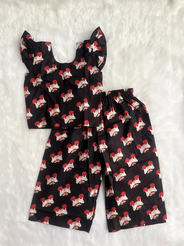 Black mickey printed palazzo set - Cute top paired with palazzo pants.