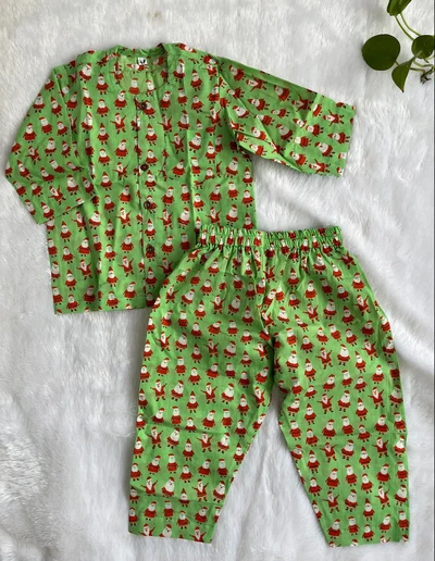 Soft, breathable cotton pajama set designed for all-day comfort. Features a relaxed fit with an elastic waistband, perfect for both boys and girls. Ideal for sleepwear and lounging. Gentle on skin and easy to maintain.