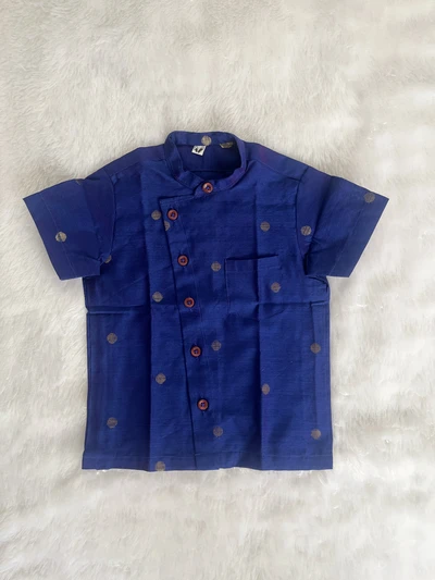 Made from rich dupion fabric, this shirt features elegant coin butta detailing for a classic festive look. Comfortable yet refined, it’s perfect for special occasions and traditional celebrations.