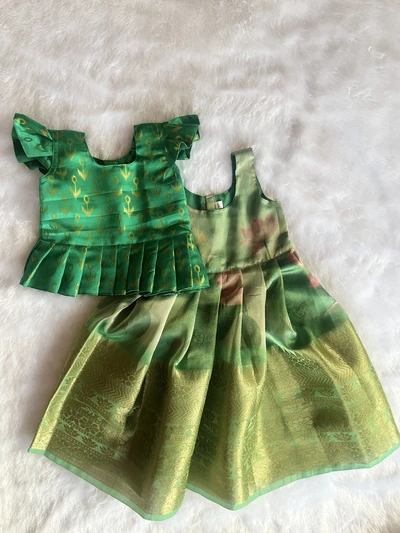 Traditional Pattu pavadai setsMaterial : Top -Brocade, Skirt - Organza zari jecord