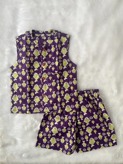 Fish printed outfit made from cotton fabric to keep the little ones comfortable throughout.