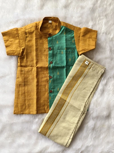 Dupion shirt paired with Tissue cotton vesti
