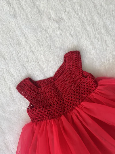 Crochet Tulle Dress - Red